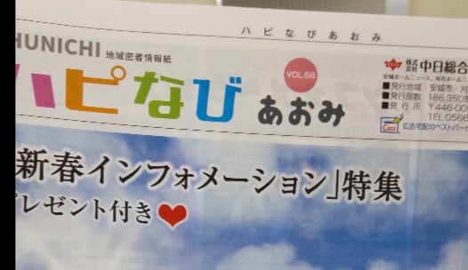 13日発行の、地域情報紙【ハピなび】へ掲載しました。